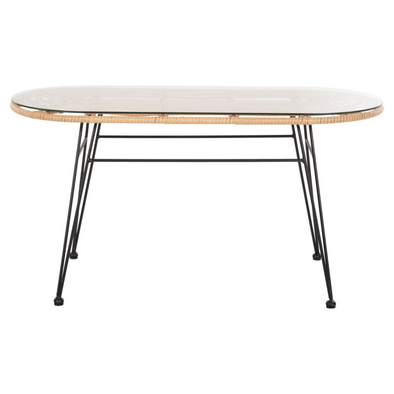 OUTDOOR OVAL COFFEE TABLE ALLEGRA HM5695.11 BEIGE WICKER-BLACK METAL 100x45x51,5Hcm.