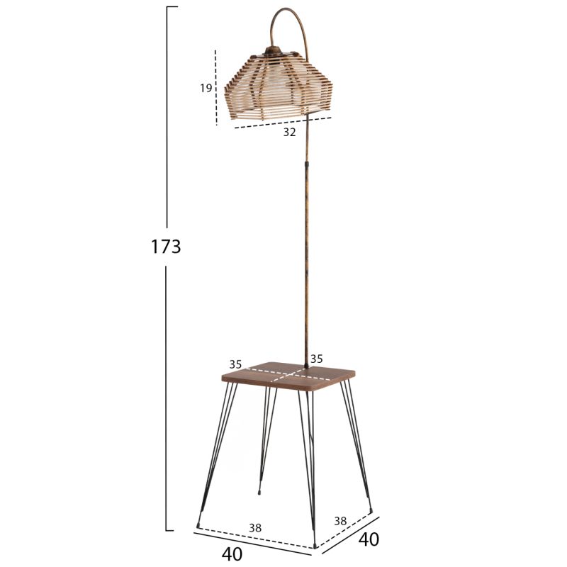 FLOOR STANDING LAMP HM7949.01 MELAMINE SIDE TABLE IN WALNUT-SAND BEIGE CAP 40x40x173Hcm.