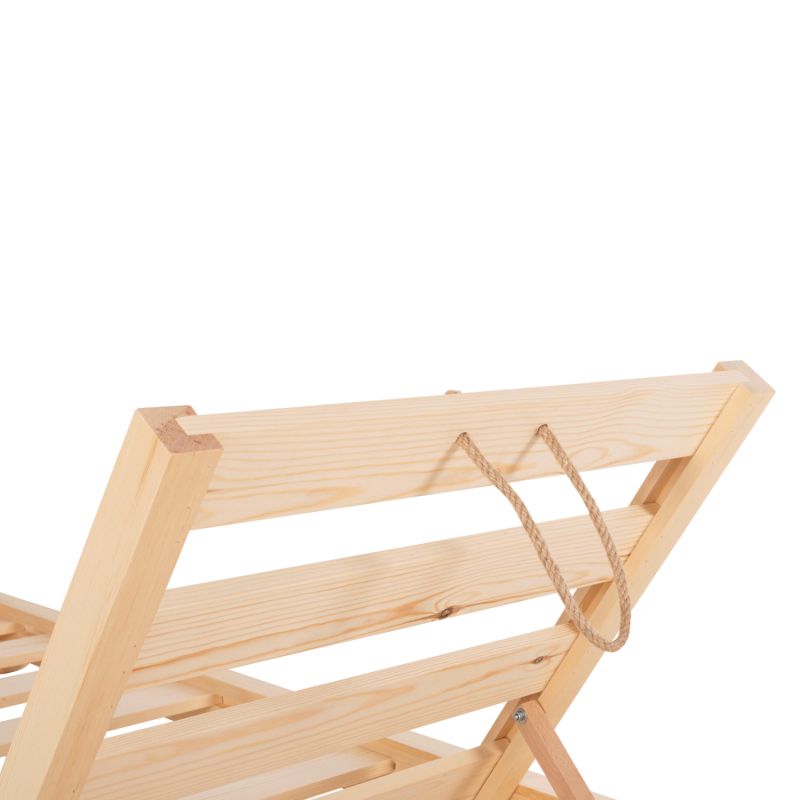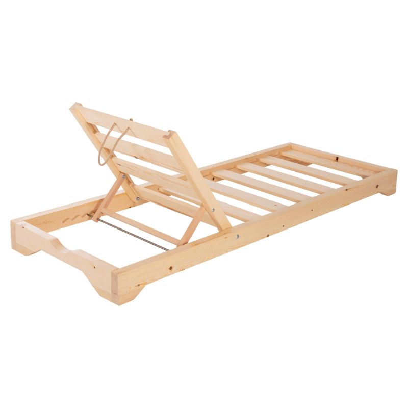 The entire beach lounger is made of water-based pine wood with impregnation. Pine is a soft, white, or pale-yellow wood that is light in weight with straight grain. It resists shrinkage, swelling and bending. Impregnation in the broadest sense is the coloring of wood (usually varnishes) by the dipping method.