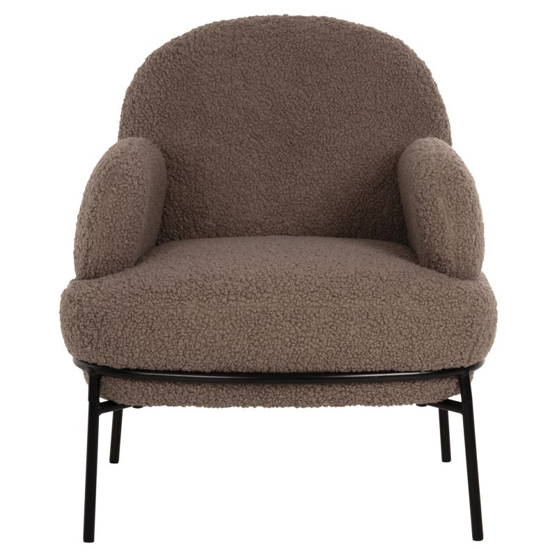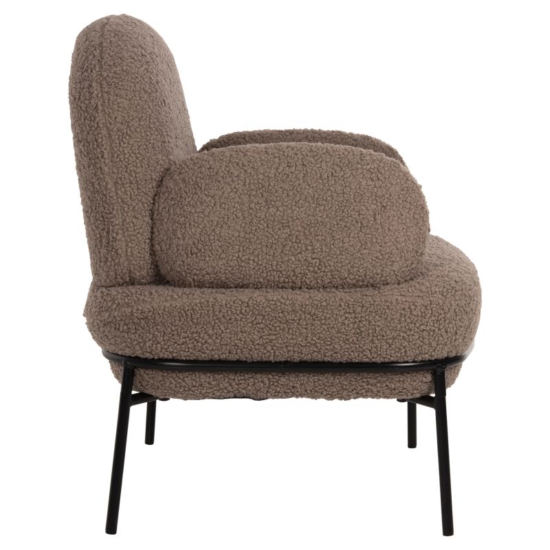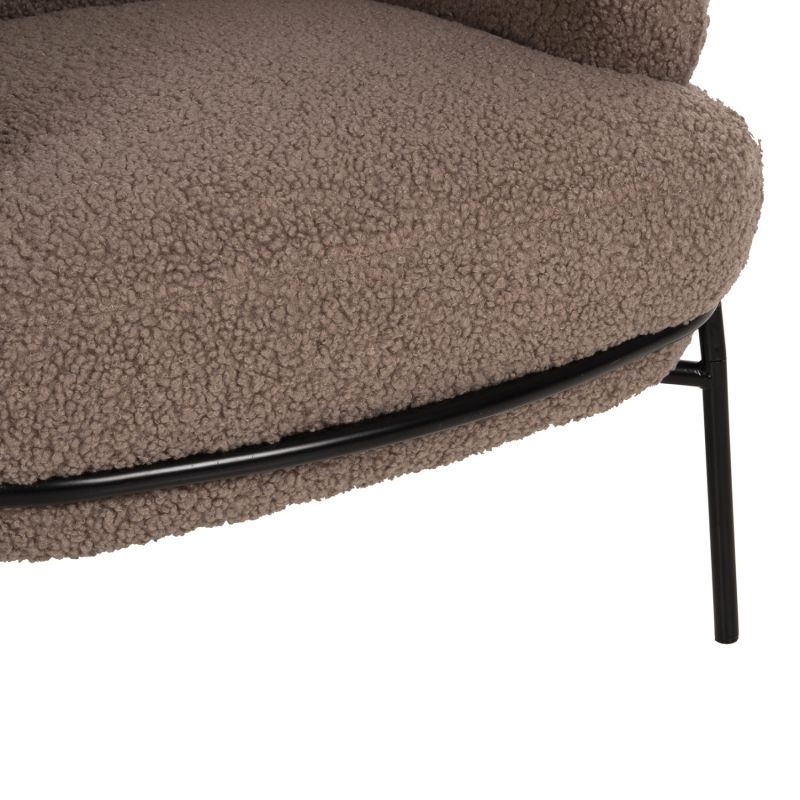 ARMCHAIR AGNES HM9525.25 LIGHT BROWN BOUCLE FABRIC-BLACK METAL LEGS 74x71x83Hcm.