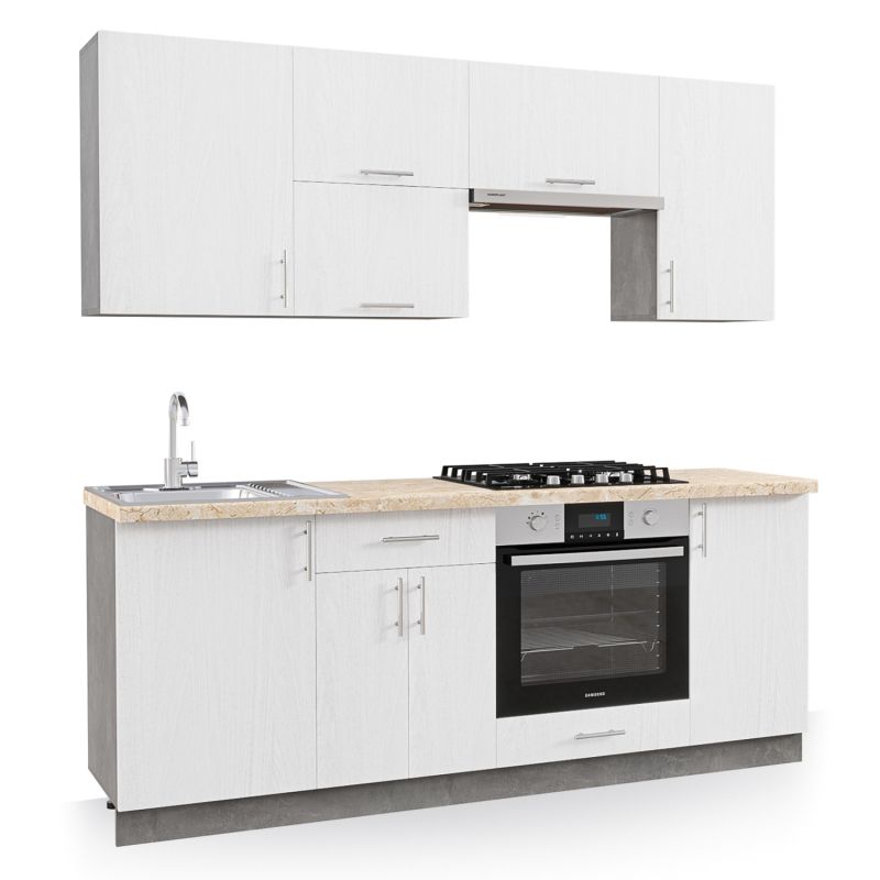 KITCHEN COMBO MELAMINE WHITE AND BEIGE MARBLE LOOK TOP 200x47x84,8Hcm.HM2470.02