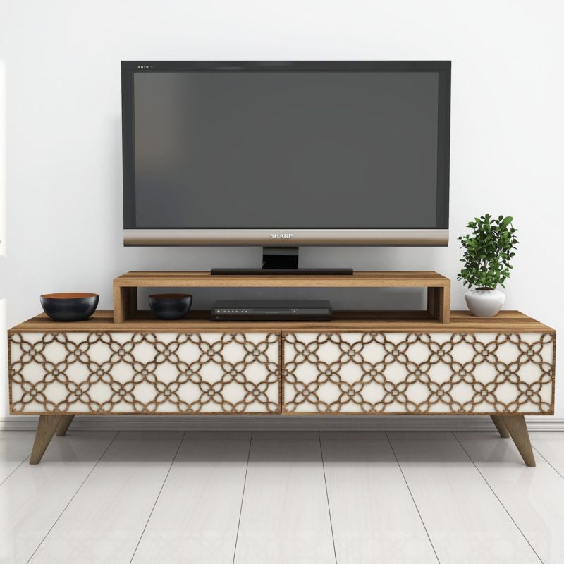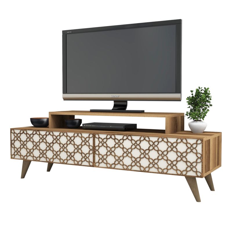 TV STAND MELAMINE HM9510.03 IN WALNUT AND CREAM COLOR 140x41.8x48.8Hcm.