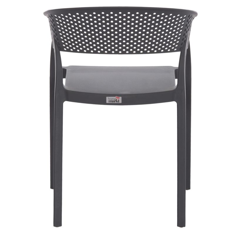 GREY polypropylene armchair. Ideal proposal for use in outdoor spaces either professional (banquets, catering companies, etc.) or at home. The armchair consists of a smooth seat and a semi-circular, independent, and "perforated" back and arms. It is beautiful and will aesthetically upgrade any outdoor space.