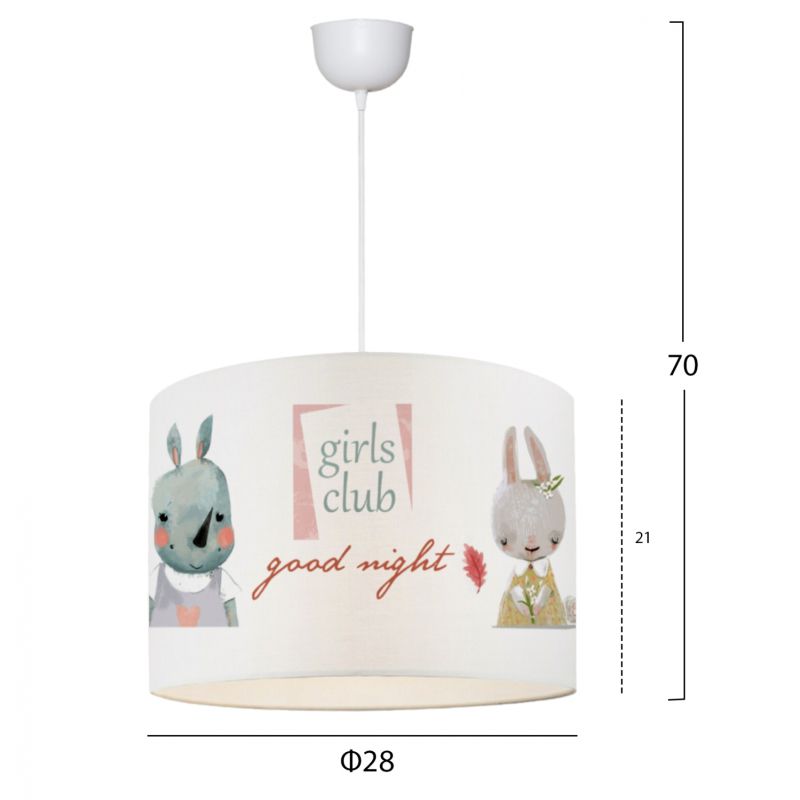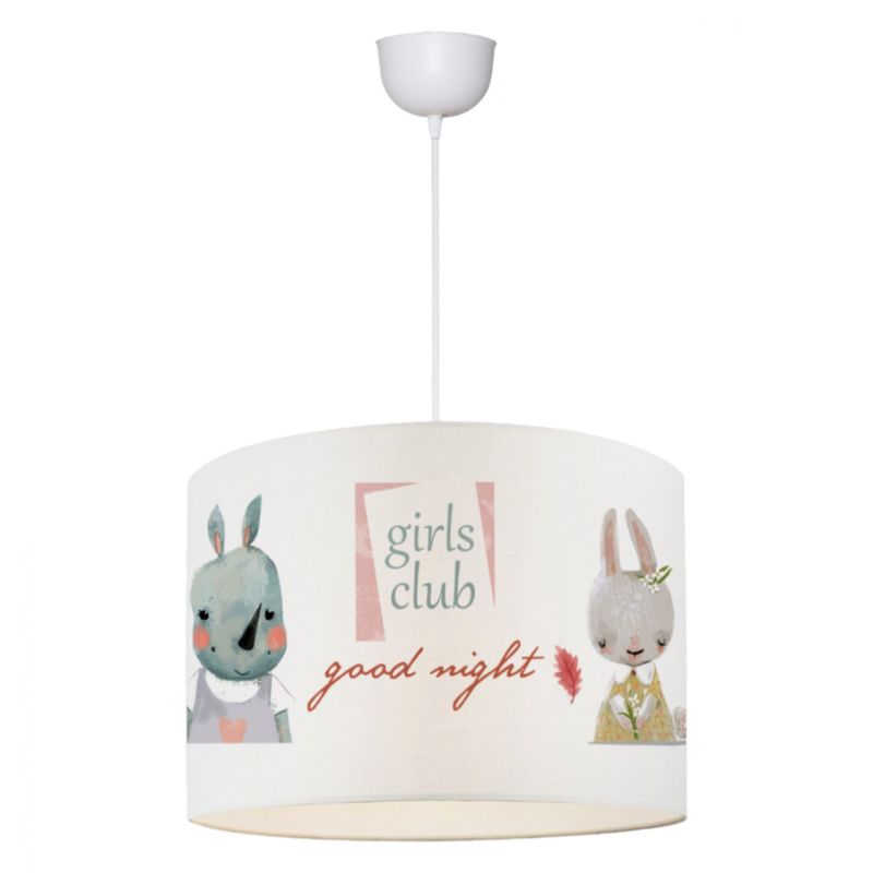 Παιδικό φωτιστικό οροφής, υφασμάτινο, σε λευκή απόχρωση,με σχέδιο Girls Club.