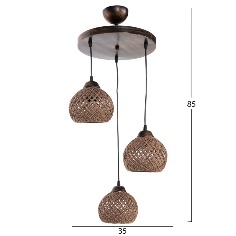 Δέχεται 3 λαμπτήρες Ε27 μέχρι 60W, οι οποίοι δεν συμπεριλαμβάνεται στη συσκευασία.