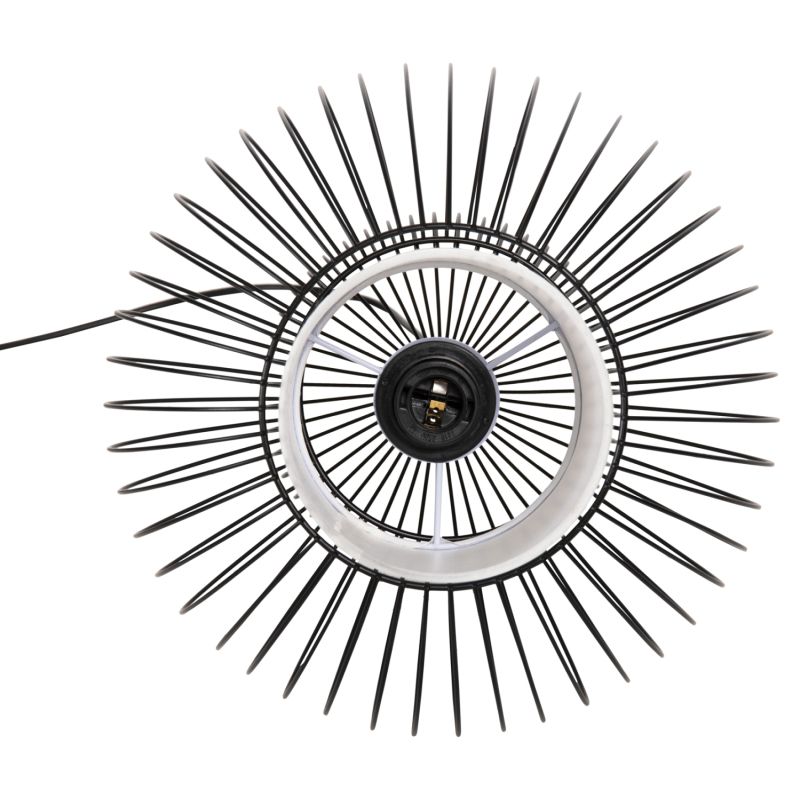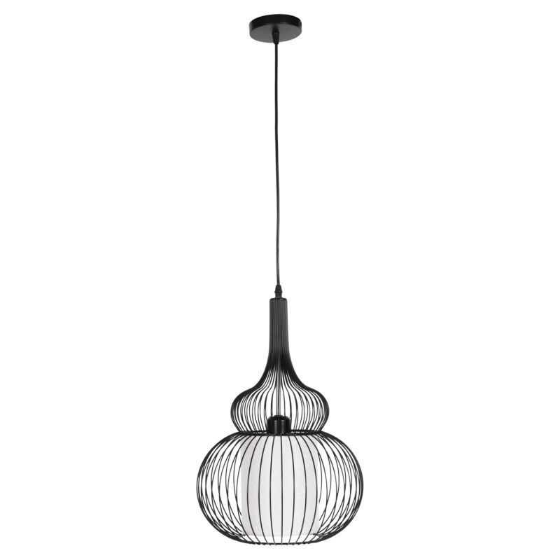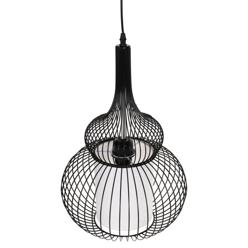 HΜ4185--- Meet this new, original, and elegant ceiling pendant lamp in our range and complete your decoration. It has a BLACK metal cap in a mesh design, while the lamp is inside a white PVC fabric that emphasizes the brightness but at the same time does not prevent the light from reaching every corner and is the epitome of modern design in ceiling lights.