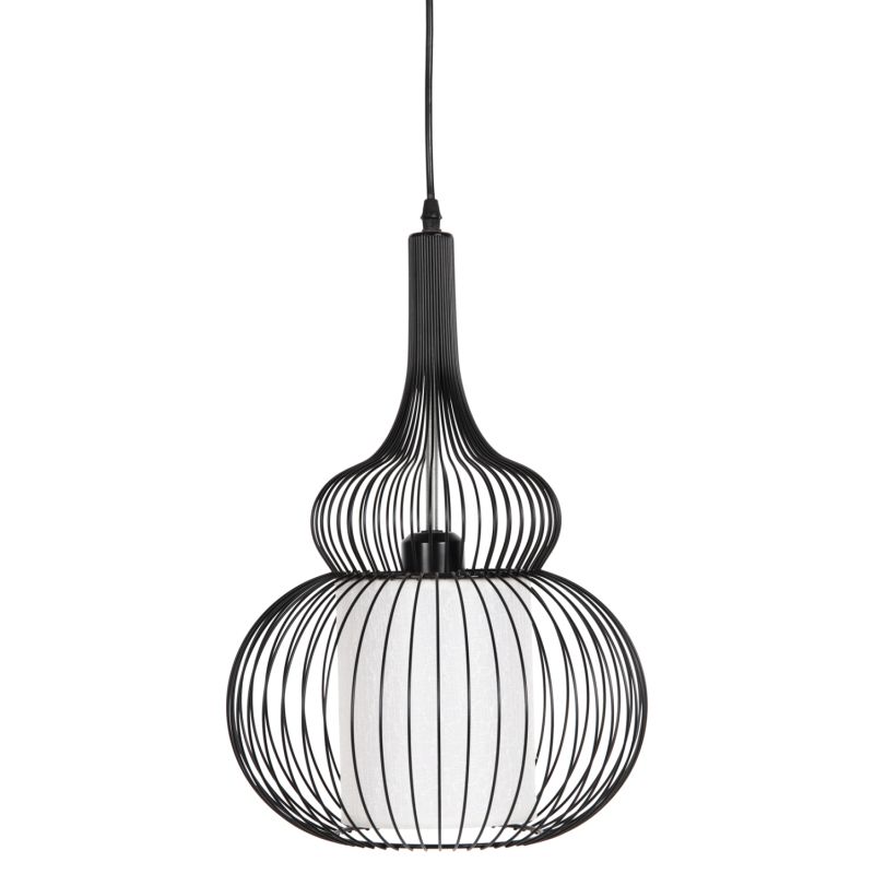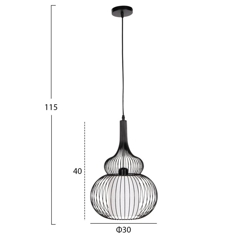 CEILING PENDANT LAMP HM4185 BLACK METAL-WHITE CLOTH Φ30x115H cm.