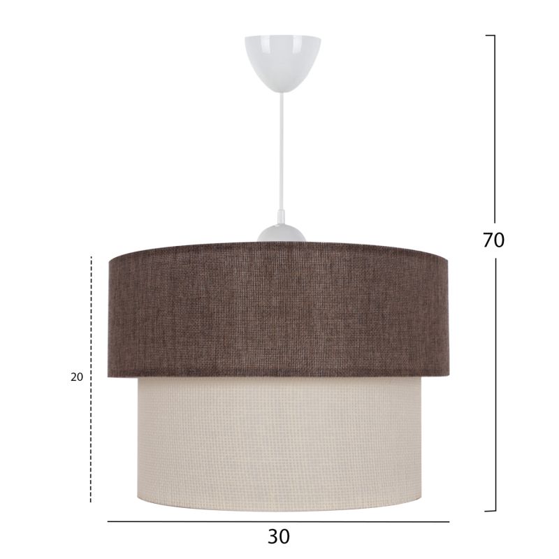ADVANTAGES: The aesthetic superiority of this lamp will make it stand out in your space because it has a simplistic yet artistic look. Its plastic frame is perfectly made while the drum has two layers. The outer layer is made of fabric in brown color, while the inner is made of fabric in off-white. The result is extremely elegant in appearance. It manages to combine an attractive modern industrial charm with the ideal size, thus adding a beautiful decoration to your ceiling. Its adjustable height can offer different levels of brightness and visual enjoyment. In addition to various rooms of your house, it can also fit in professional spaces such as restaurants, cafes, hotels, etc. The colors of the lamp and the design capture the eye, but at the same time require special decorative coherence to fully highlight its aesthetic virtues.
