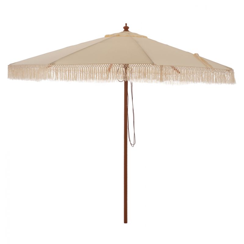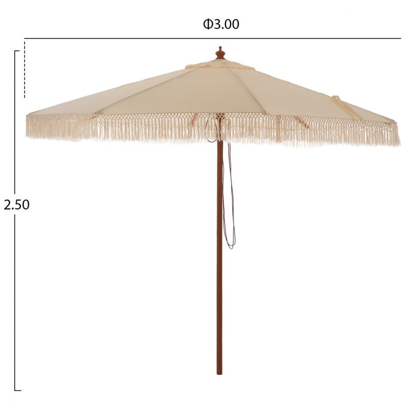 UMBRELLA WAGNER HM5776.01 BEIGE SHADE AND FRINGES-HARDWOOD BROWN POLE Φ3X2.50Hm