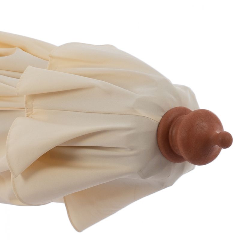 The umbrella pole is made of solid hardwood. When we refer to solid wood, we mean woods made entirely from the trunk of a tree. Solid wood is the most expensive choice in terms of wood but stands out for its timeless aesthetics.