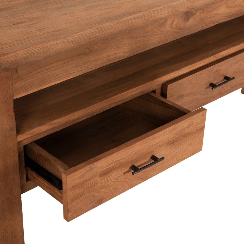 CONSOLE WITH 3 DRAWERS HM9556 RECYCLED TEAK WOOD IN NATURAL COLOR 180x45x80Hcm.