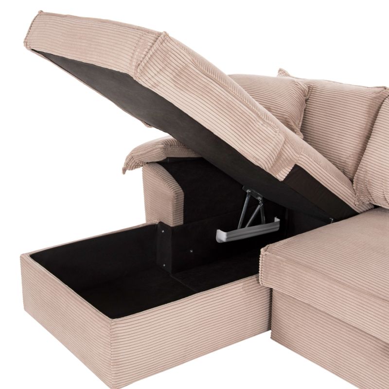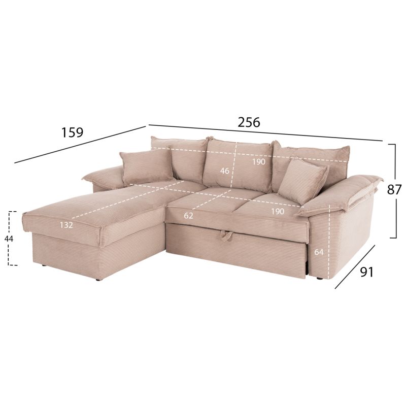 CORNER (LEFT) SOFA-BED WITH STORAGE SPACE ALDO HM3276.01L BEIGE FABRIC 256x91-159x87Hcm.