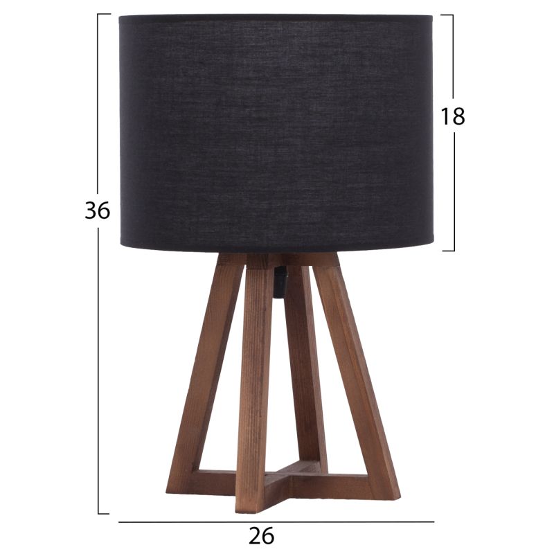 TABLE LAMP WOODEN BASE BLACK FABRIC CAP 26x26x36Hcm.HM7706.01