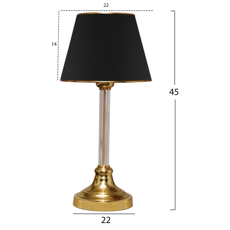 TABLE LAMP HM7591.03 GOLD BASE, TRANSPARENT PILLAR, BLACK CAP