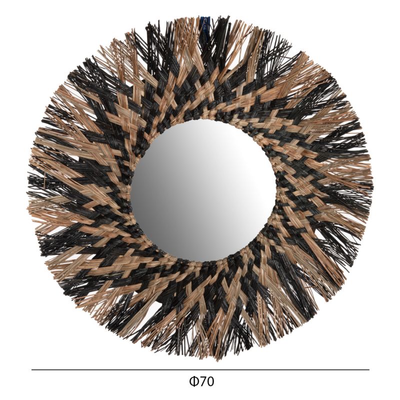 WALL MIRROR ROUND HM7833 KNITTED MENDONG GRASS FRAME IN BLACK&NATURAL COLOR Φ70cm.