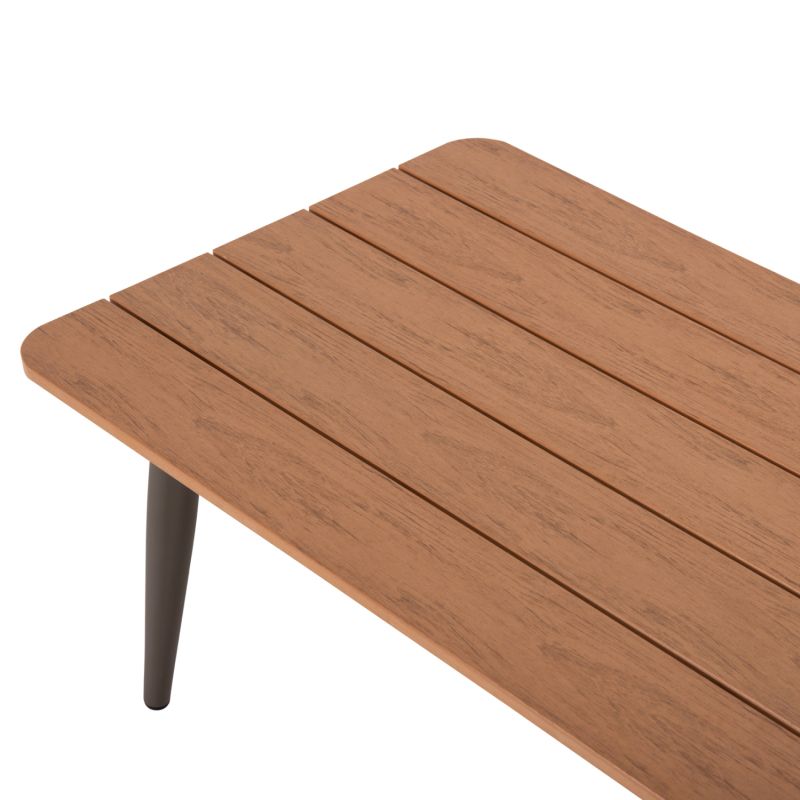 The whole set is made of powder coated aluminum. Aluminum is a metal with excellent mechanical properties, and it is very resistant to various forms of corrosion and requires minimal maintenance costs. Aluminum can also be recycled indefinitely, maintaining its characteristics without any quality degradation. Powder coating is a dry coating process used as a metal finish through an electrostatic process, then cured with heat. It’s suitable for both indoor and outdoor applications.