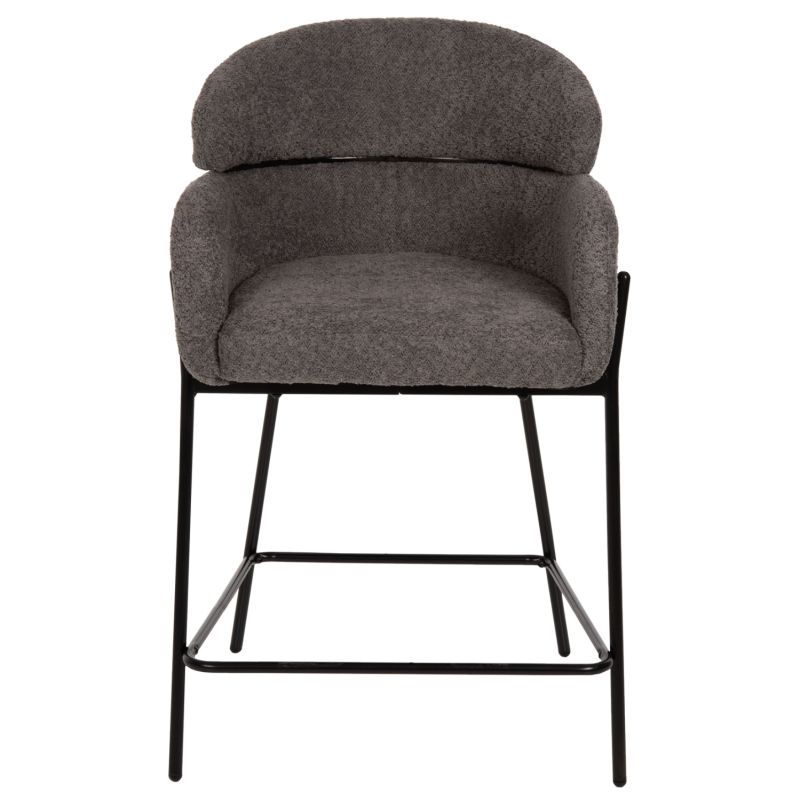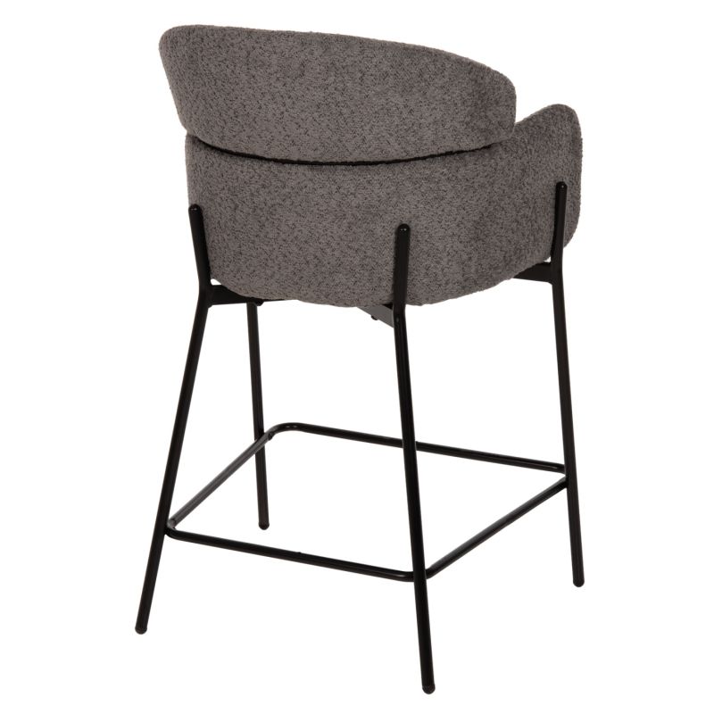 Professional bar stool WOLF in GRAY color with BLACK metal legs. The legs are joined together with a metal rail. The stool is simple, quality, and elegant in appearance, and is sure to catch the eye with the boucle fabric that is upholstered. It is MEDIUM-high with a back that hugs the body while the arms are relatively high, which enhances the comfortable character of this stool.