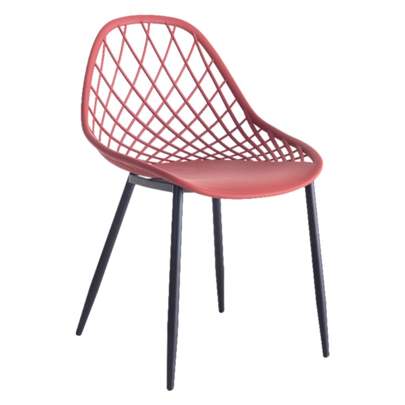 The HM9524.06 chair has everything you would want from such a piece of furniture. It's quality and elegant in appearance, and definitely an eye-catcher. The back and seat are a one-piece molded polypropylene piece in RED color. The back, in fact, has a "mesh" shape, which makes it pleasant and light. The base of the seat and the legs are metal in MATTE BLACK color. The whole construction is light and comfortable, and it will become the favorite seat in any space thanks to its practicality. Ideal choice, also, for professional use, such as in catering, etc.