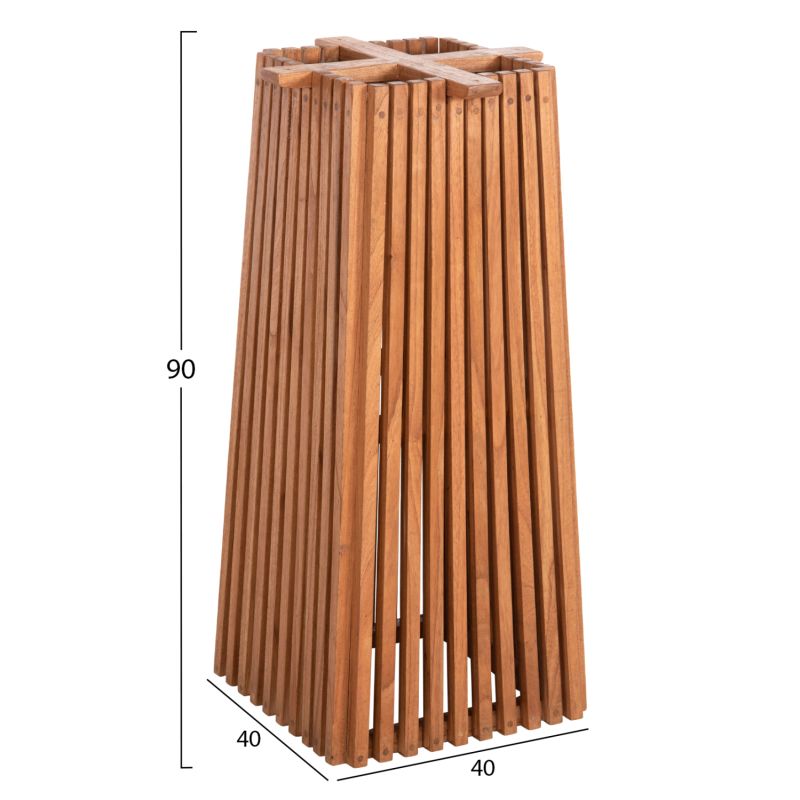 The square FRANTZ is a base for INDOOR BAR tables with satisfactory dimensions in NATURAL color. This base is a wooden structure with several beams in a pyramidal arrangement (square).