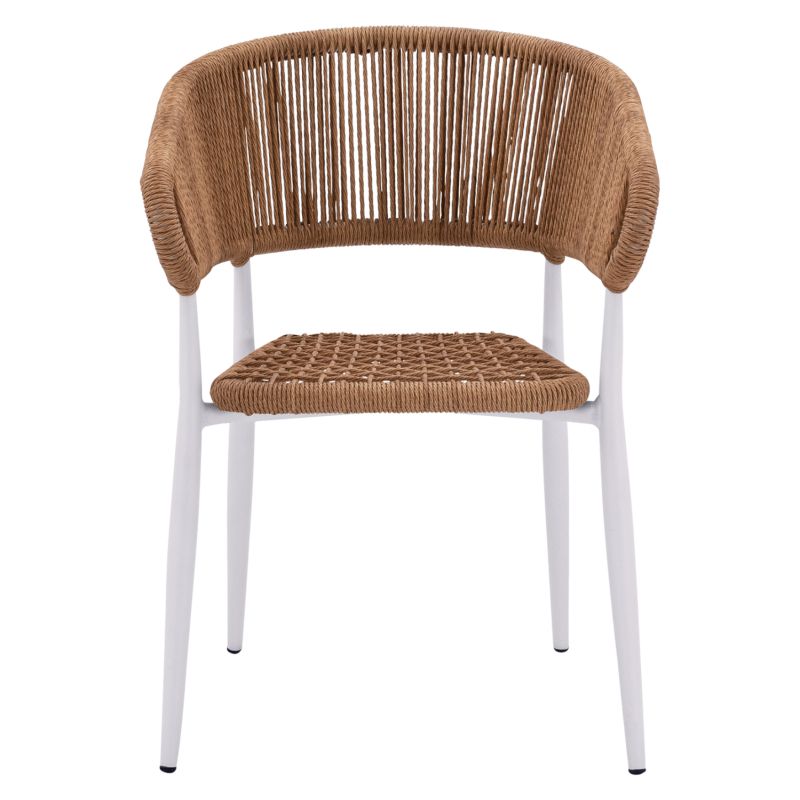 The EULO aluminum armchair in WHITE color, both for home and professional use, is beautiful! Its design with the medium height and wide semi-circular back and the wide seat, both made of synthetic Rattan ("twisted" that looks like a rope), will aesthetically upgrade the space where you will place it and will catch the eye.