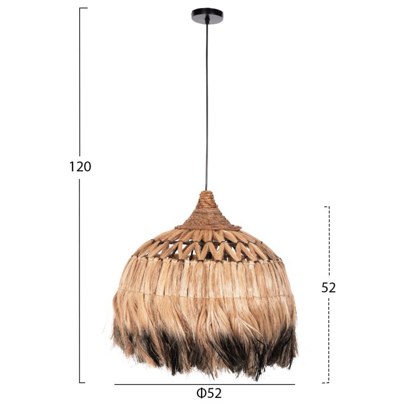CEILING PENDANT WITH ABACA FIBER CAP IN NATURAL AND BLACK COLOR Φ52x52-120Hcm.HM7761