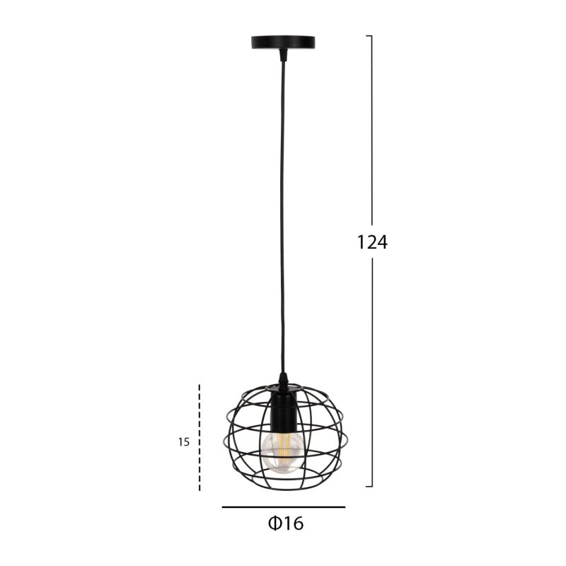 CEILING PENDANT LAMP HM4037 BLACK METAL SPHERE Φ16x124Hcm.