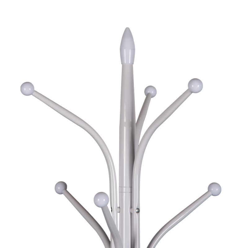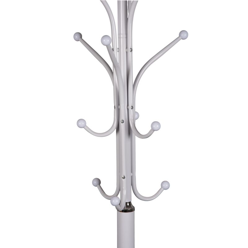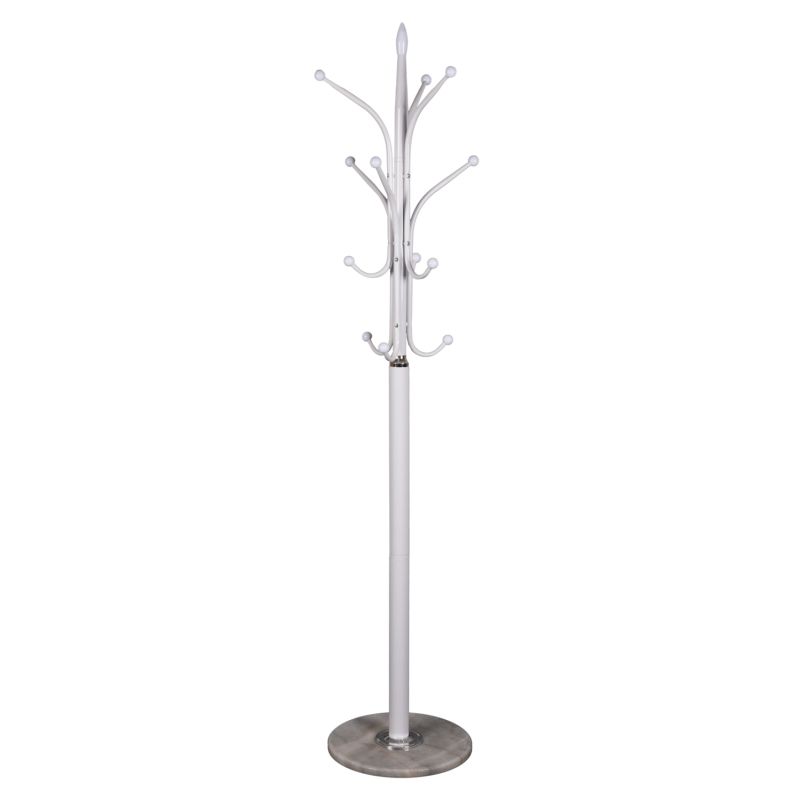 The floor standing hanger HM9573.02 in WHITE color is a piece of furniture useful for any space. It is metal with a round marble base which offers the necessary low center of gravity and provides 13 hanging positions (including the top one) with "ball" caps at the edges. This is a beautiful piece that will upgrade the entrance of your home or business.