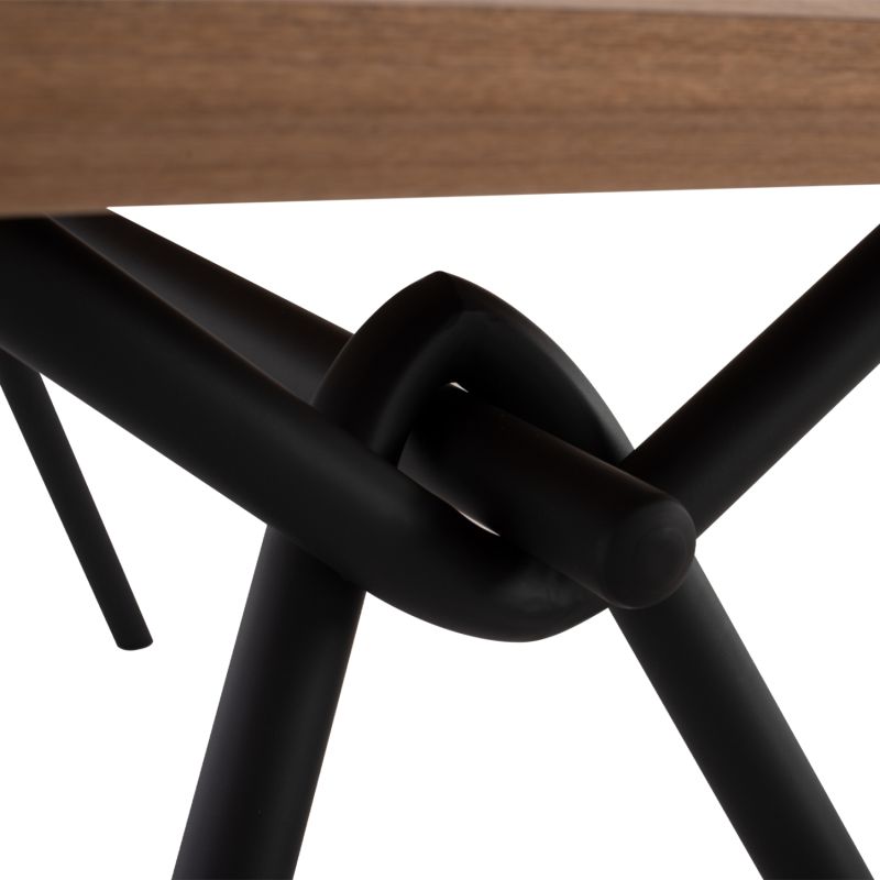 MANDY is a rectangular dining table, with MDF tabletop with oak wood veneer in HONEY OAK color and rustic style. This surface is slanted and rests on a black metal frame with legs in a slanted Λ shape. It is an imposing table in a large dimension and with a beautiful two-tone color, as a result of which it can fit aesthetically in almost any dining space.