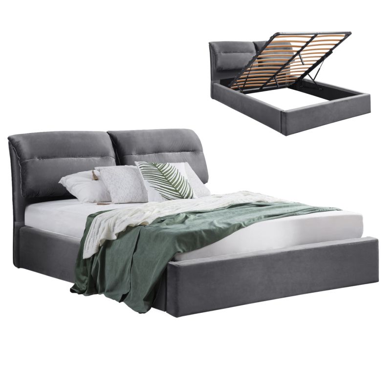 HM565.01 Bed, Kendra, Velvet Grey, Storage space 160x200cm