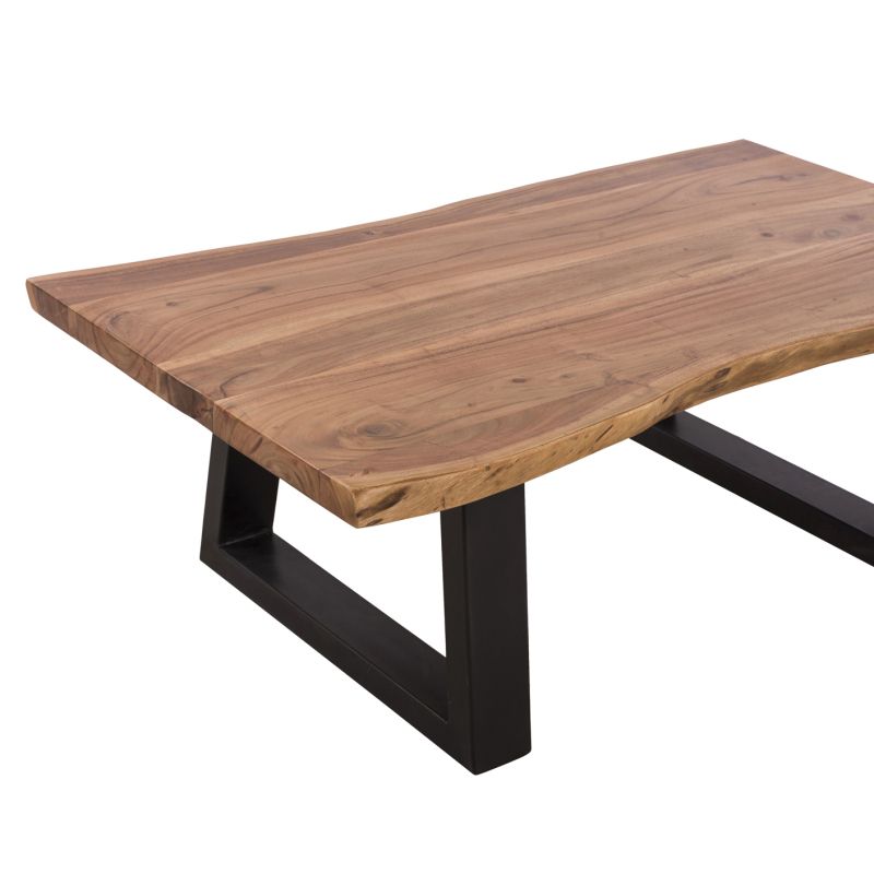 ΗΜ8166.11 ACACIA TABLE--- Discover the unique handmade table HM8166.11 with natural solid ACACIA wood surface in NATURAL color. The shape is rectangular and rests on two black metal bases with a trapezoidal shape. The modern design meets nature and gives a timeless and warm feeling to your space.