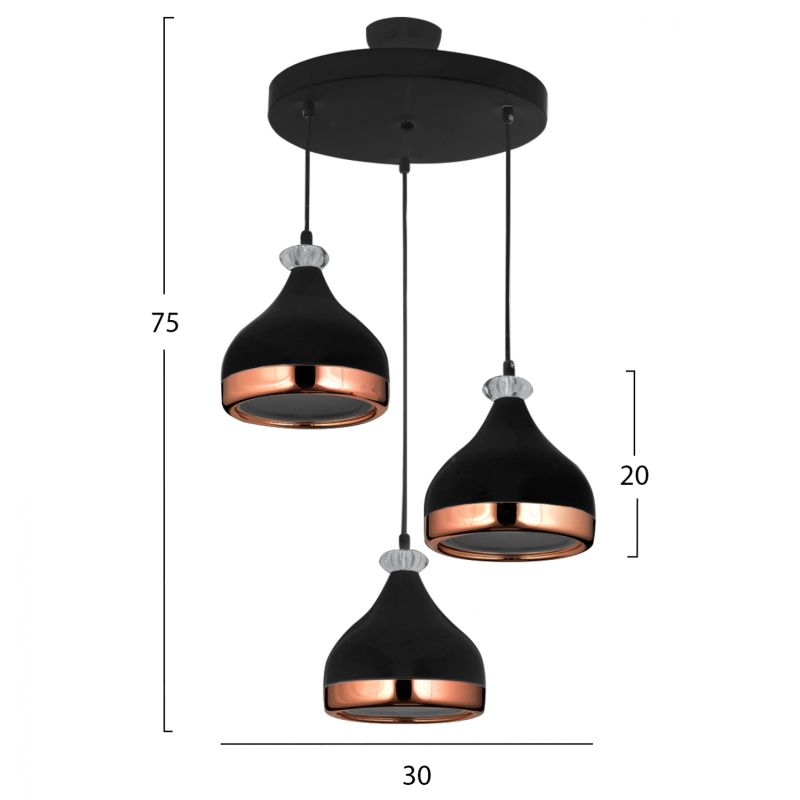 ΦΩΤΙΣΤΙΚΟ ΟΡΟΦΗΣ 3ΦΩΤΟ ΜΕΤΑΛΛΙΚΟ ΜΑΥΡΟ HM7524.01 30x30x75 εκ.