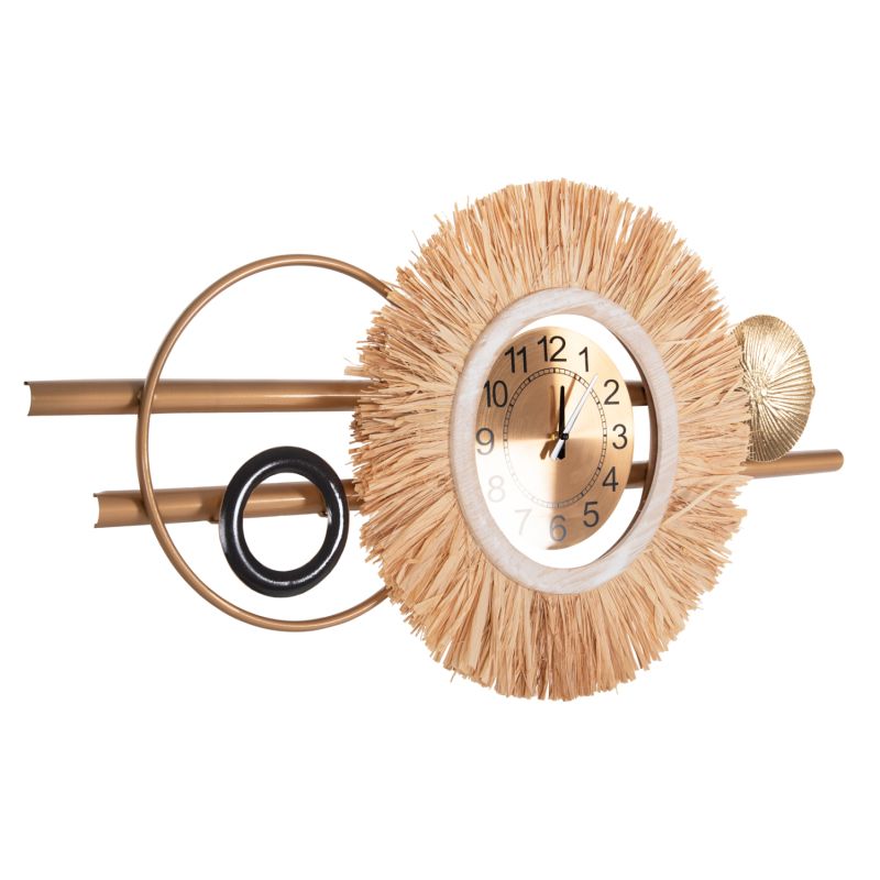WALL CLOCK HM4200 METAL & RAFFIA FIBERS IN EARTH TONES 100x49Hcm.
