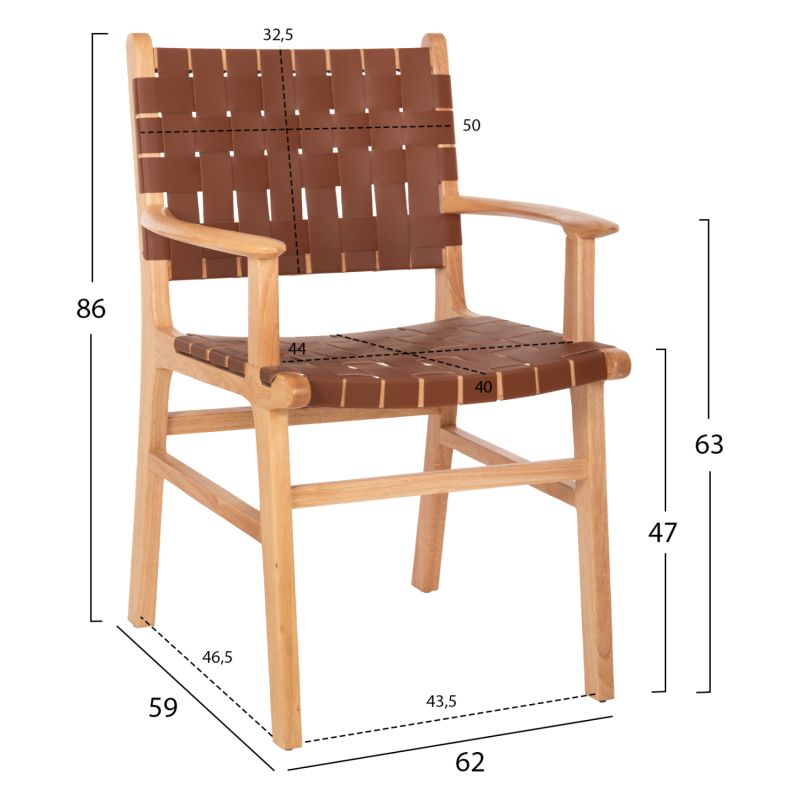 ARMCHAIR FELIPE HM9328.01 TOON WOOD PU LEATHER BROWN 62x59x86Hcm.
