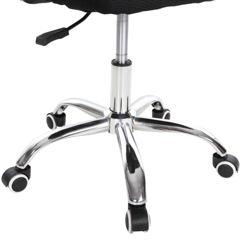 Finally, the caster wheels of the chair with their white stripe, are made of reinforced polyethylene and a rolling surface of soft polyurethane for silent rolling and at the same time protection of the floor. The connection to the "star" of the base is made with 2 cm long steel pins.