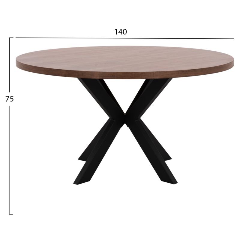 DINING TABLE ROUND SARI HM9310.02 MDF &WALNUT WOOD VENEER METAL LEGS Φ140x75Hcm.