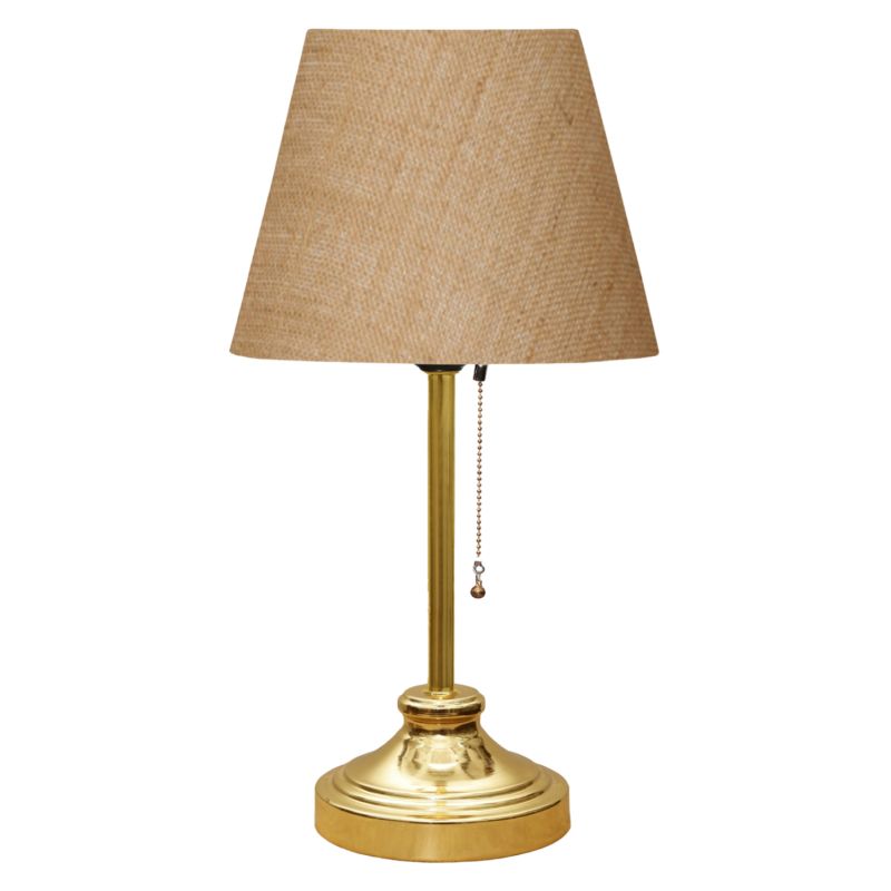 Decorative table lamp with single pillar. The base of the luminaire has a bell-shaped shape in glossy gold color while the pillar is also in gold color. The "cap" has a trapezoidal circular shape in beige color of sand, with wooden rings at the edges, while the on-off switch is in the style of a traditional gold chain pendant switch next to the bulb. The light diffuses in the space pleasantly and its reflection on the golden pillar of the luminaire and the glossy surface of the base, plays pleasantly with your eyes. These types of luminaires are not intended for reading and this should always be taken into account when choosing one. They are purely decorative and their matching with the surrounding area should be harmonious. This lamp is elegant and convenient in dimensions, providing countless possibilities to "tie" with the rest of your decoration. It is a small work of art.