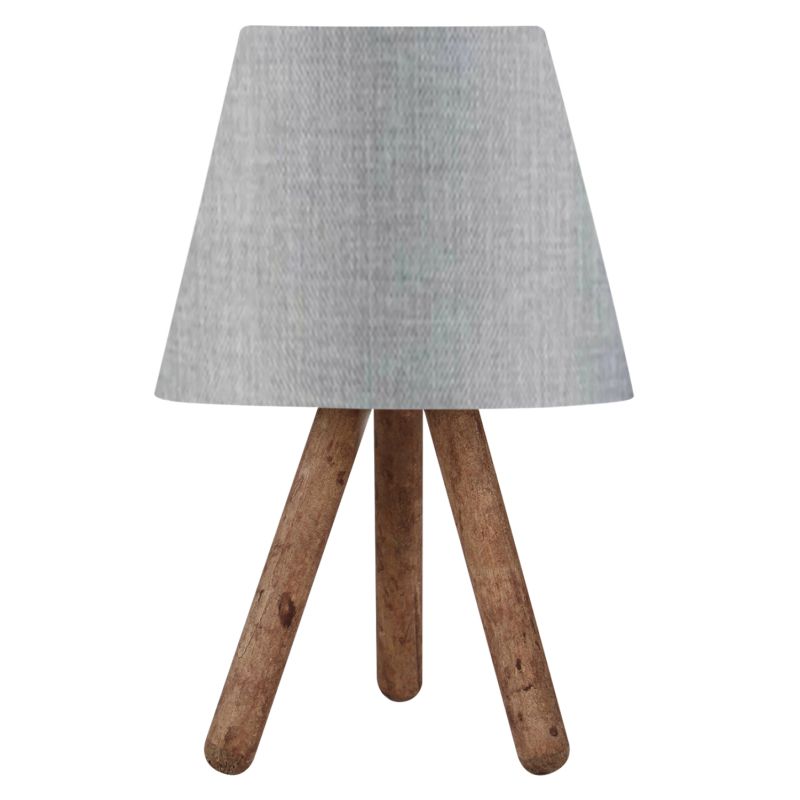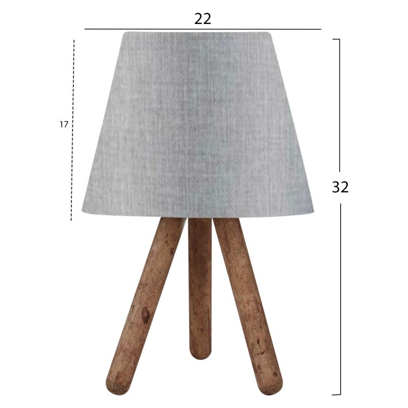 A very special and modern table lamp. It does not have the classic base of a table lamp, but it stands on a wooden tripod with its cap resting on the top of the tripod. The design refers to a floor lamp more than a table lamp. The legs have the size and shape of a baton in brown color, while the cap is in light-grey color, and has a circular and trapezoidal shape. This type of luminaires is not intended for reading and this should always be taken into account when choosing one. They are purely decorative and their matching with the surrounding area should be harmonious. This lamp is modern, elegant and convenient in dimensions, providing countless possibilities to "tie" with the rest of your decoration. It is a small work of art.