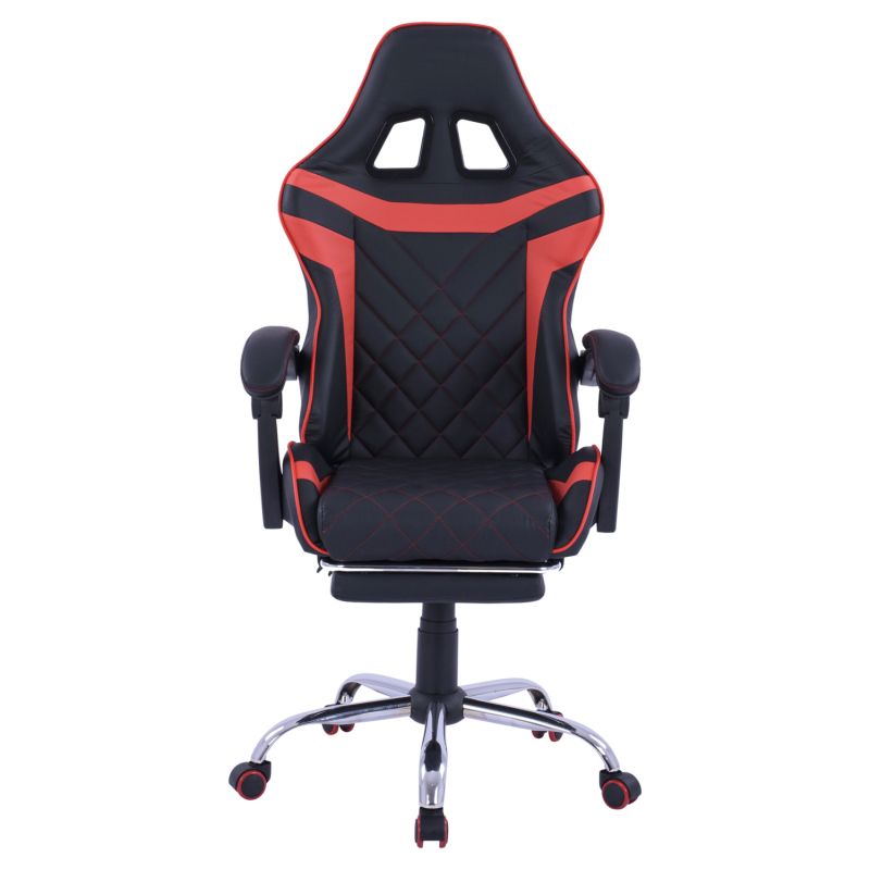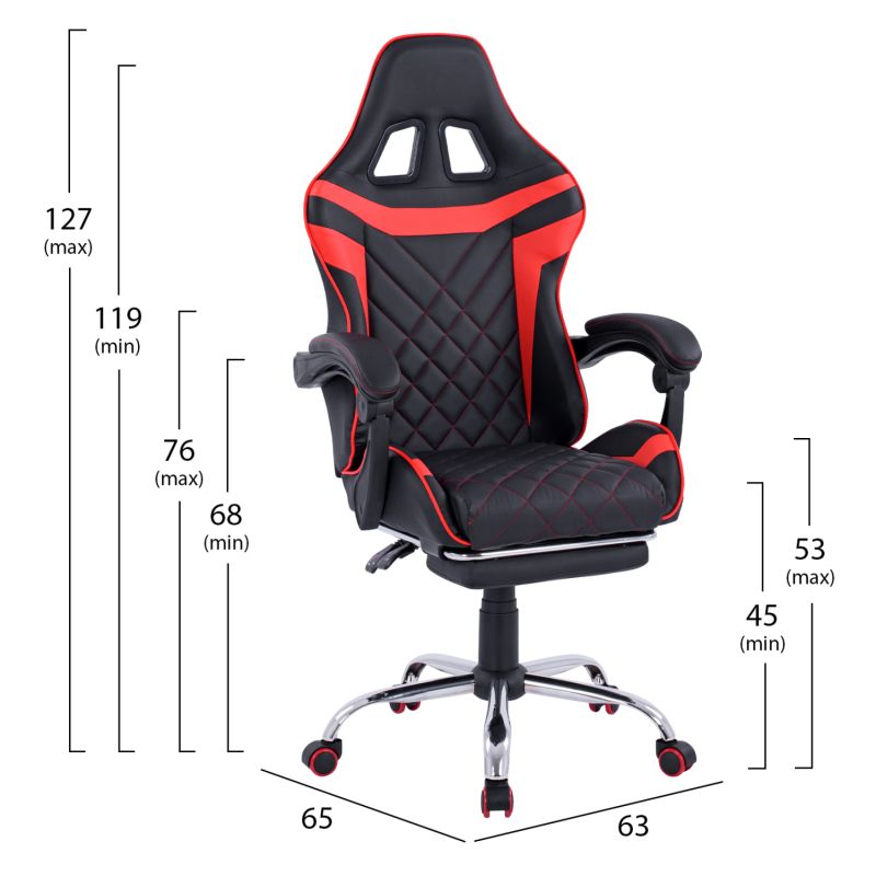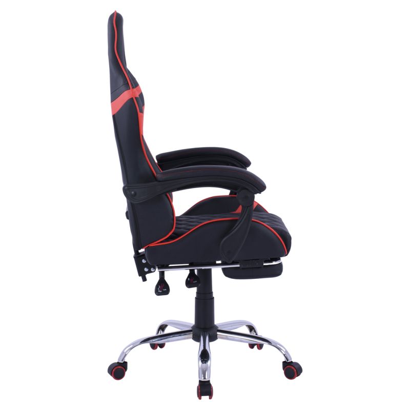 Want to come out victorious after an all-night Call of Duty chase? Or feel safe "driving" in Grand Theft Auto? Whatever your favorite game, HOMEMARKT has the solution! We present the SKYLER gaming chair in a red-black combination with beautiful seams on the PU leather, that will fascinate you. It is a chair with a high backrest so that you protect your torso from injuries and offer it unique support for any kind of "difficulty"! Its ergonomic design either on the seat or on the back hugs the body, and makes you not feel tired at all even after endless hours in front of the computer. And if at some point you want to take a break and sleep or play lying down using your wireless gadgets, the back of the chair "falls" slightly and in combination with the folding footrest, turns into a bunk bed and gives you the opportunity to take advantage of every second! The height and recline adjustments are, of course, in the standard equipment. What more could anyone ask for?
