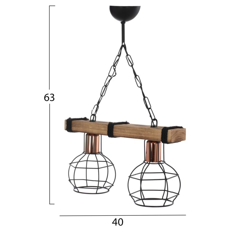 CEILING PENDANT 2-LIGHT WITH WOOD AND METAL GRIDS 40x16x63Hcm.HM7681.01