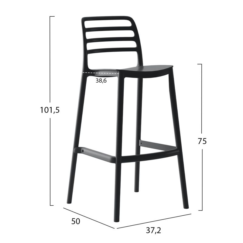 BAR STOOL POLYPROPYLENE SNOD HM6099.02 BLACK 37,2x50x101,5Hcm.