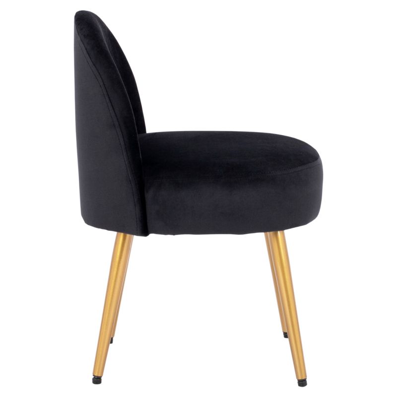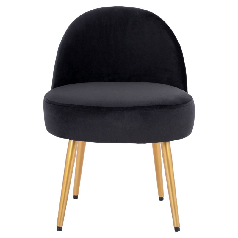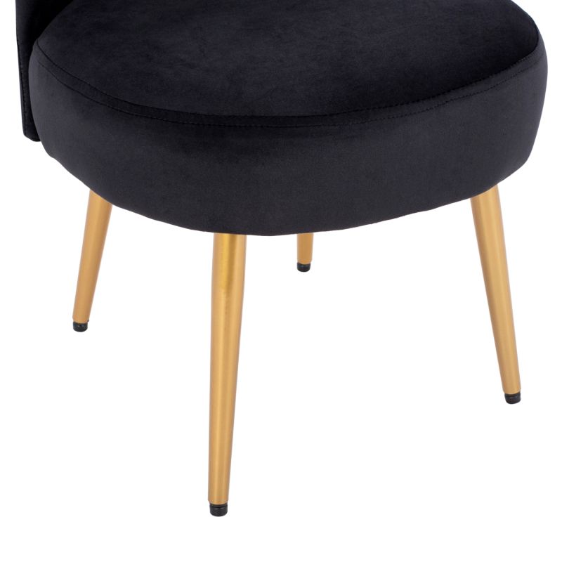 Stool with YASMINE back made of velvet in black with metallic gold legs.
