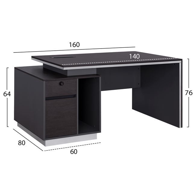 Professional office with cabinet on the left side, made of high quality melamine, in grey and wenge color.