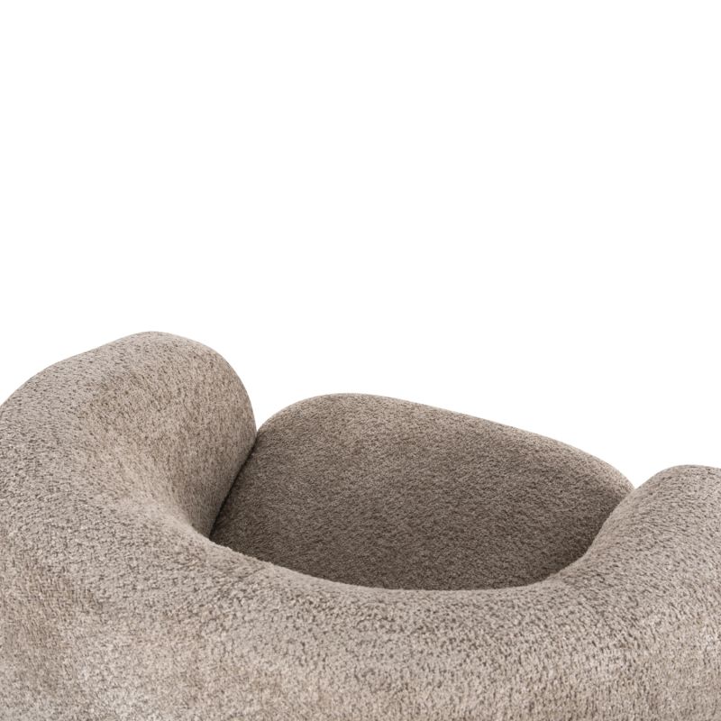 The whole armchair is upholstered in high-quality boucle fabric. This is any fabric that has a knot-curl in its weave. It is made of almost all raw materials (although it is usually synthetic) with special knotted threads or highly twisted threads, so that it has a curly surface. It does not wrinkle and can be plain, melange, checkered or tweed.