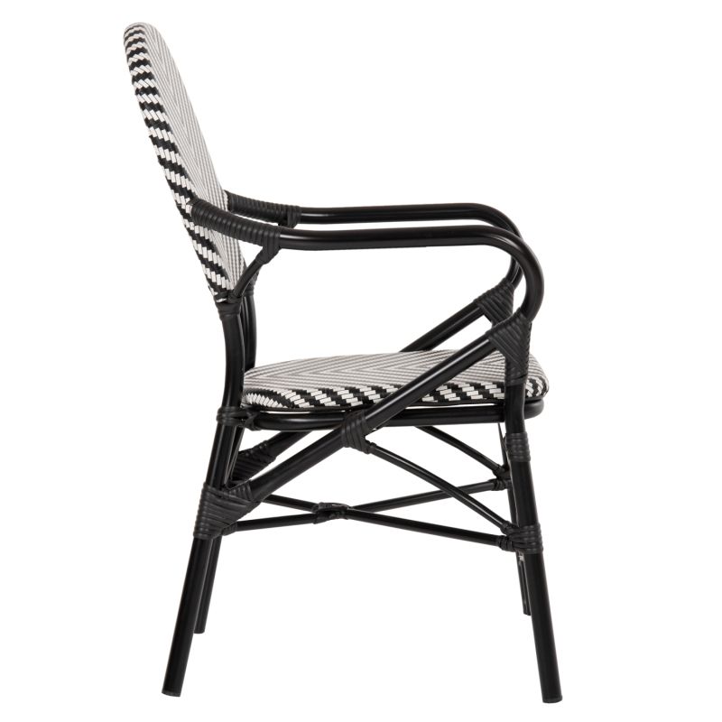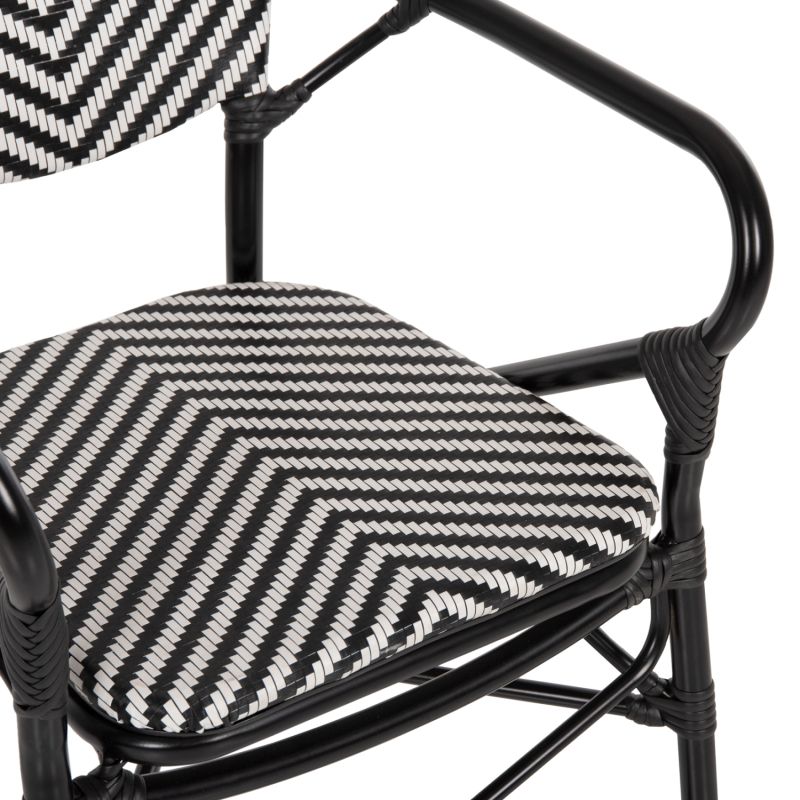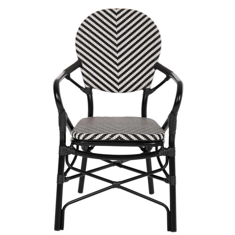 The outdoor armchair HΜ5928.01 does not go unnoticed. The beautiful BLACK frame with ties at its various joints is durable, while the seat and back are upholstered in textilene in BLACK AND WHITE color. The arms are high and create the feeling that the armchair hugs the body. A timeless and at the same time classic proposal that will complement and match beautifully with a variety of other furniture in your outdoor space.