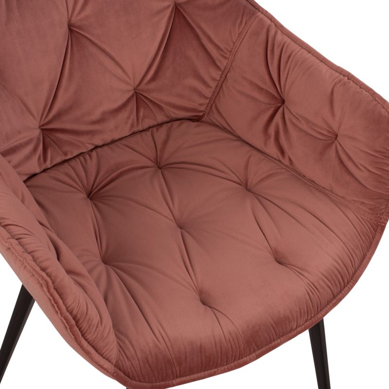 Bethany armchair with velvet fabric in dusty pink and metallic legs in black.