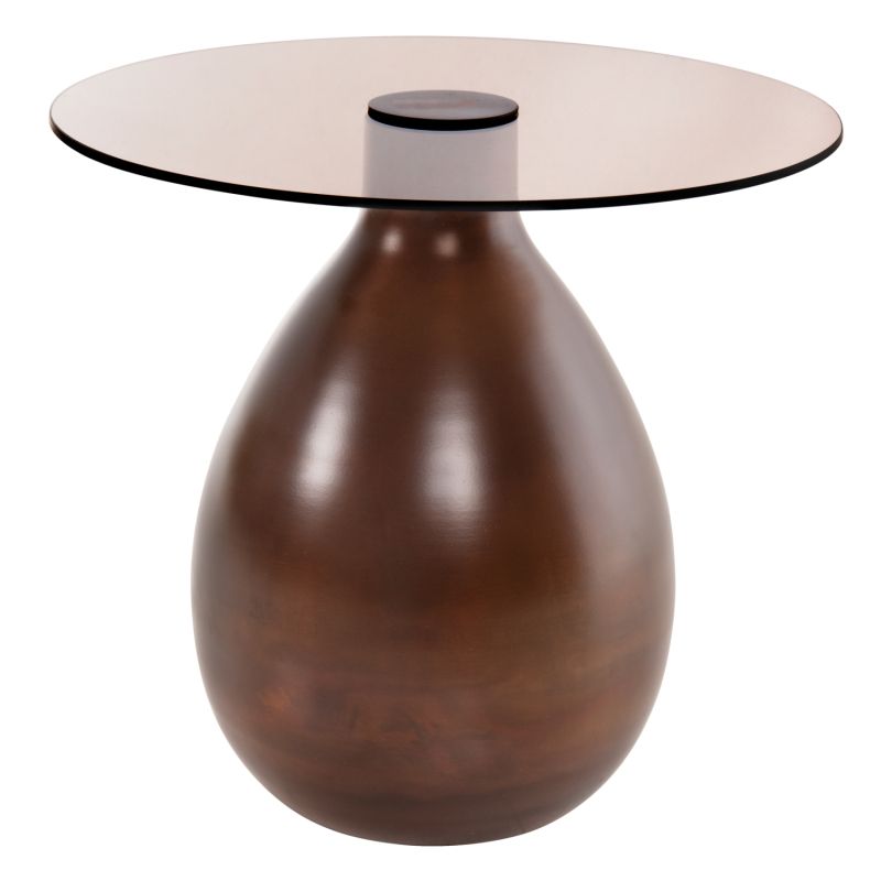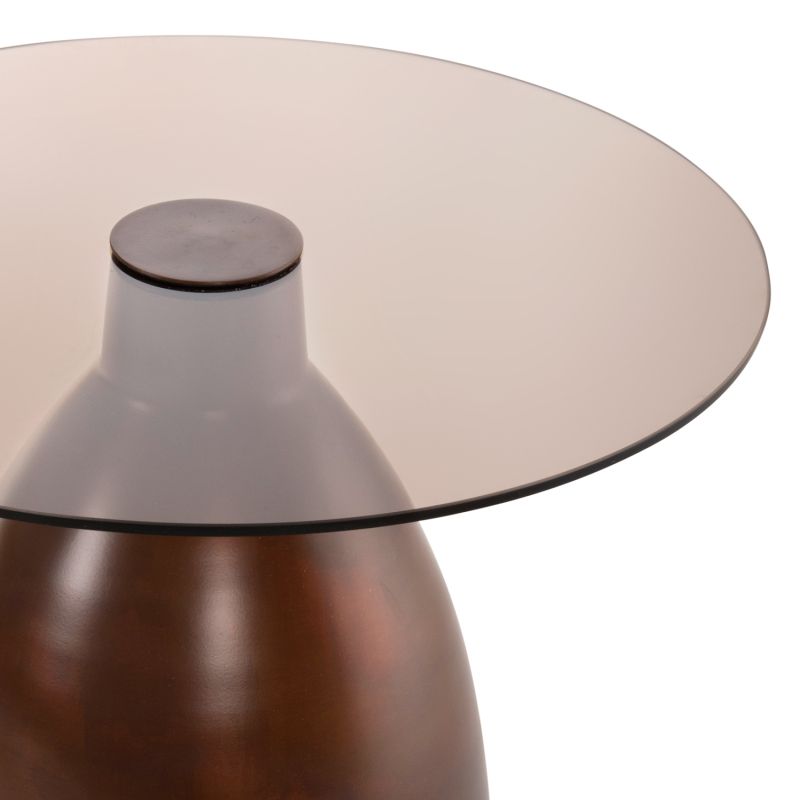 The REGEN side table set of 2 is one of the new additions to our range. These are 2 round tables with cylindrical bases, made of metal. Their color is COPPER. The tabletops are made of slightly brown-tinted glass. Ideal for both home and business premises.