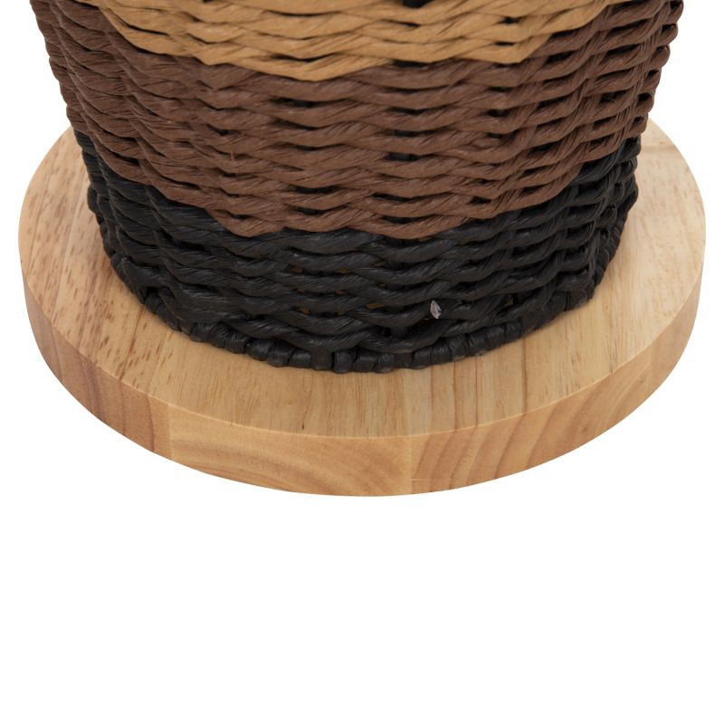 Discover this tall cylindrical floor lamp with a round wooden base plate, which accepts 1 light bulb. The frame is metal but what dominates is the covering with excellent quality paper rope in sand BEIGE and BLACK color. A beautiful floor lamp that diffuses light in all directions and creates the atmosphere you always imagined for your space, so that you can create your own corner of relaxation or even decoration. Because light means more than a lamp. It means decoration, atmosphere, art, flair, and of course science.