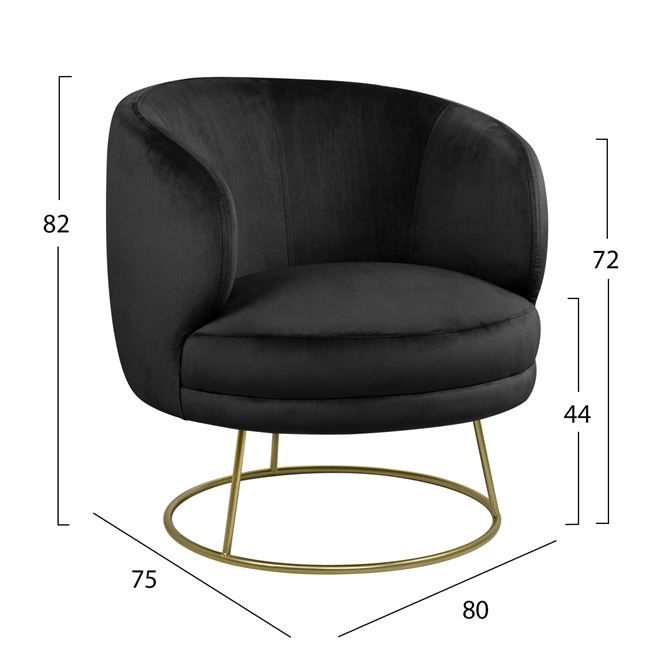 Armchair Arien HM8403.04, Black velvet with golden base 80x75x82cm