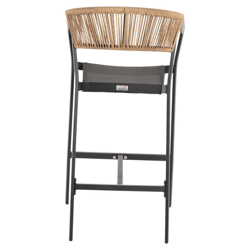 BAR STOOL ALUMINUM BLACK HM5892.05 BLACK TEXTLINE&BEIGE RATTAN 56x58x105Hcm.