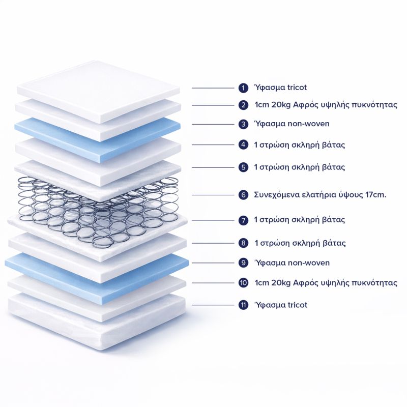 Mattresses with continuous bonnell springs, have the lowest cost compared to other mattresses on the market and can be easily replaced so that you can always have a new mattress regularly, while due to their hardness they offer support to the spine even in overweight people. They are also less flexible, making it easier to rotate them. Therefore, they are ideal for people who want a cheap choice and people who like hard mattresses.